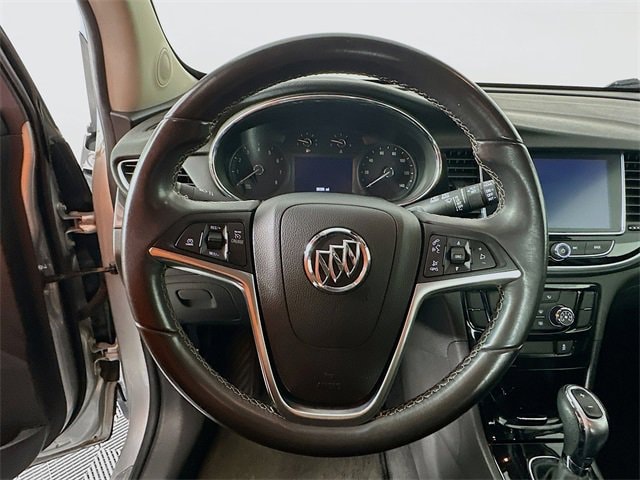 2019 Buick Encore Preferred 6-Speed Automatic Electronic with Overdrive ECOTEC 1.4L I4 SMPI DOHC Turbocharged VVT Quicksilver Metallic Odometer is 39150 miles below market average! Encore Preferred, ECOTEC 1.4L I4 SMPI DOHC Turbocharged VVT, Quicksilver Metallic, Ebony w/Cloth w/Leatherette Seat Trim, 120-Volt Power Outlet, 4-Wheel Disc Brakes, 6 Speakers, 6-Speaker Audio System, ABS brakes, Air Conditioning, Apple CarPlay/Android Auto, Brake assist, Dual front impact airbags, Dual front side impact airbags, Electronic Stability Control, Emergency communication system: OnStar and Buick connected services capable, Exterior Parking Camera Rear, Front Bucket Seats, Front wheel independent suspension, Fully automatic headlights, Heated door mirrors, Knee airbag, Low tire pressure warning, Occupant sensing airbag, Outside temperature display, Overhead airbag, Power door mirrors, Power driver seat, Power steering, Power windows, Preferred Equipment Group 1SB, Radio: Buick Infotainment System AM/FM Stereo, Rear Cross Traffic Alert, Rear window wiper, Remote keyless entry, Remote Vehicle Starter System, Ride & Handling Suspension, Safety Package, Security system, Side Blind Zone Alert, SiriusXM Radio, Speed control, Speed-sensing steering, Steering wheel mounted audio controls, Tachometer, Telescoping steering wheel, Tilt steering wheel, Traction control, Turn signal indicator mirrors, Variably intermittent wipers, Wheels: 18 Machined-Face Alloy.