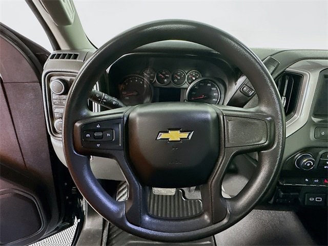 2021 Chevrolet Silverado 1500 Custom 8-Speed Automatic 2.7L Turbo Black Odometer is 5504 miles below market average! Silverado 1500 Custom, 4D Crew Cab, 8-Speed Automatic, 4WD, Black, Jet Black w/Cloth Seat Trim, 120-Volt Bed Mounted Power Outlet, 120-Volt Instrument Panel Power Outlet, 220 Amp Alternator, 3.42 Rear Axle Ratio, 3.5 Diagonal Monochromatic Display, 4-Wheel Disc Brakes, 4G LTE Wi-Fi Hot Spot Capable, ABS brakes, Air Conditioning, Auto-Locking Rear Differential, Black Name Plates (LPO), Bluetooth® For Phone, Body Color Grille, Brake assist, Chevrolet Connected Access Capable, Custom Convenience Package, Custom Value Package, Dark Essentials Package (LPO), Deep-Tinted Glass, Driver vanity mirror, Dual front impact airbags, Dual front side impact airbags, Electric Rear-Window Defogger, Electronic Cruise Control, Electronic Stability Control, EZ Lift Power Lock & Release Tailgate, Front Frame-Mounted Black Recovery Hooks, Front wheel independent suspension, Fully automatic headlights, Heated door mirrors, Heavy Duty Suspension, Hitch Guidance, Infotainment Package, LED Cargo Area Lighting, Low tire pressure warning, Manual Tilt Wheel Steering Column, Occupant sensing airbag, OnStar & Chevrolet Connected Services Capable, Outside temperature display, Overhead airbag, Overhead console, Power Door Locks, Power door mirrors, Power windows, Preferred Equipment Group 1CX, Rear 60/40 Folding Bench Seat (Folds Up), Rear step bumper, Remote Keyless Entry, Remote Vehicle Starter System, SiriusXM Radio, Speed-sensing steering, Standard Tailgate, Tachometer, Theft Deterrent System (Unauthorized Entry), Tilt steering wheel, Traction control, Trailering Package, Variably intermittent wipers, Wheels: 20 x 9 Bright Silver Painted Aluminum.