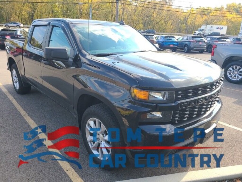 2021 Chevrolet Silverado 1500 Custom 8-Speed Automatic 2.7L Turbo Black Recent Arrival! Odometer is 4571 miles below market average! Silverado 1500 Custom, 4D Crew Cab, 8-Speed Automatic, 4WD, Black, Jet Black w/Cloth Seat Trim, 120-Volt Bed Mounted Power Outlet, 120-Volt Instrument Panel Power Outlet, 220 Amp Alternator, 3.42 Rear Axle Ratio, 3.5 Diagonal Monochromatic Display, 4-Wheel Disc Brakes, 4G LTE Wi-Fi Hot Spot Capable, ABS brakes, Air Conditioning, Auto-Locking Rear Differential, Black Name Plates (LPO), Bluetooth® For Phone, Body Color Grille, Brake assist, Chevrolet Connected Access Capable, Custom Convenience Package, Custom Value Package, Dark Essentials Package (LPO), Deep-Tinted Glass, Driver vanity mirror, Dual front impact airbags, Dual front side impact airbags, Electric Rear-Window Defogger, Electronic Cruise Control, Electronic Stability Control, EZ Lift Power Lock & Release Tailgate, Front Frame-Mounted Black Recovery Hooks, Front wheel independent suspension, Fully automatic headlights, Heated door mirrors, Heavy Duty Suspension, Hitch Guidance, Infotainment Package, LED Cargo Area Lighting, Low tire pressure warning, Manual Tilt Wheel Steering Column, Occupant sensing airbag, OnStar & Chevrolet Connected Services Capable, Outside temperature display, Overhead airbag, Overhead console, Power Door Locks, Power door mirrors, Power windows, Preferred Equipment Group 1CX, Rear 60/40 Folding Bench Seat (Folds Up), Rear step bumper, Remote Keyless Entry, Remote Vehicle Starter System, SiriusXM Radio, Speed-sensing steering, Standard Tailgate, Tachometer, Theft Deterrent System (Unauthorized Entry), Tilt steering wheel, Traction control, Trailering Package, Variably intermittent wipers, Wheels: 20 x 9 Bright Silver Painted Aluminum.