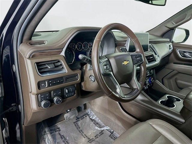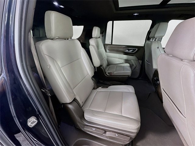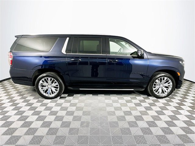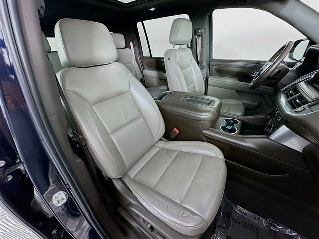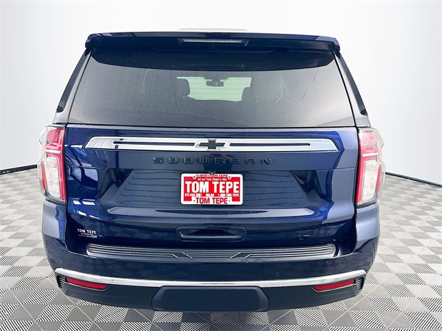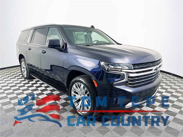 2021 Chevrolet Suburban LT 10-Speed Automatic with Overdrive EcoTec3 5.3L V8 Midnight Blue Metallic Carfax One-Owner, Suburban LT, EcoTec3 5.3L V8, 10-Speed Automatic with Overdrive, 4WD, Midnight Blue Metallic, Gideon/Very Dark Atmosphere Leather, 10-Way Power Driver & Passenger Seat Adjusters, 2 USB Data Ports, 2-Speed Active Electronic AutoTrac Transfer Case, 2nd Row Pwr Release 60/40 Split-Folding Bench Seat, 3rd Row 60/40 Power-Folding Split-Bench, 4-Wheel Disc Brakes, ABS brakes, Advanced Trailering Package, Advanced Trailering System, Apple CarPlay/Android Auto, Auto High-beam Headlights, Auto-Dimming Inside Rear-View Mirror, Automatic Heated Steering Wheel, Automatic temperature control, Bose 9-Speaker Stereo Audio System Feature, Brake assist, Bright Front & Rear Door Sill Plates, Driver & Front Outboard Passenger Airbags, Driver Alert Package, Dual front impact airbags, Dual front side impact airbags, Dual-Pane Power Panoramic Sunroof, Electronic Stability Control, Emergency communication system: OnStar and Chevrolet connected services capable, Extra Capacity Cooling System, Floor Console w/Storage Area, Four wheel independent suspension, Front & Rear Park Assist, Fully automatic headlights, Hands-Free Rear Power Programmable Liftgate, HD Radio, HD Surround Vision, Heated 2nd Row Outboard Seats, Heated Driver & Front Passenger Seats, Hitch Guidance w/Hitch View, Infotainment Display, Integrated Trailer Brake Controller, Lane Keep Assist w/Lane Departure Warning, Leather Seating Surfaces, Leather-Wrapped Steering Wheel, LED Daytime Running Lamps, Low tire pressure warning, LT Signature Package, Luxury Package, Max Trailering Package, Memory Settings, Memory Settings For Driver, Outside Heated Power-Adjustable Mirrors, Outside temperature display, Overhead console, Power driver seat, Power Liftgate, Power steering, Power Tilt & Telescopic Steering Column, Power windows, Preferred Equipment Group 1LT, Premium Smooth Ride Suspension, Rain sensing wipers, Rear air conditioning, Rear Cross Traffic Alert, Rear Pedestrian Alert, Rear window wiper, Remote keyless entry, Remote Start, Security system, SiriusXM Radio w/360L, Speed control, Speed-sensing steering, Steering wheel mounted audio controls, Tachometer, Telescoping steering wheel, Tilt steering wheel, Traction control, Trip computer, Universal Home Remote, Variably intermittent wipers, Wheels: 20 x 9 Painted Aluminum.