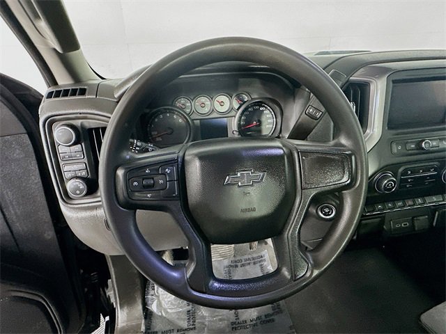 Inside the cab, you'll find a clean and durable space featuring Jet Black cloth seating and a 10-way power driver seat with lumbar support ideal for long drives or long days at the worksite. The Chevrolet Infotainment 3 system keeps you connected through Apple CarPlay, Android Auto, Bluetooth, and Wi-Fi Hotspot capability, while wireless phone projection means fewer cords and more convenience.