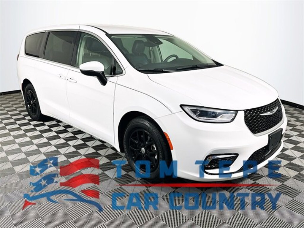 2023 Chrysler Pacifica Touring L 9-Speed 948TE Automatic 3.6L V6 24V VVT Bright White Clearcoat Apple CarPlay, Carfax One-Owner, Pacifica Touring L, 3.6L V6 24V VVT, Bright White Clearcoat, Black w/Caprice Leatherette Bucket Seats w/S Logo, 10.1 Touchscreen Display, 17 x 7.0 Aluminum Wheels, 3rd row seats: split-bench, 4-Wheel Disc Brakes, ABS brakes, Apple CarPlay/Android Auto, Audio memory, Automatic temperature control, Brake assist, Caprice Leatherette Bucket Seats, Dual front impact airbags, Dual front side impact airbags, Electronic Stability Control, Four wheel independent suspension, Front Bucket Seats, Front fog lights, Fully automatic headlights, GPS Antenna Input, Heated door mirrors, Heated front seats, Integrated Active Noise Cancellation, Knee airbag, Low tire pressure warning, Memory seat, Occupant sensing airbag, Overhead airbag, ParkView Rear Back-Up Camera, Power door mirrors, Power driver seat, Power Liftgate, Power steering, Power windows, Radio: Uconnect 5 w/10.1 Display, Rain sensing wipers, Rear air conditioning, Rear window wiper, Reclining 3rd row seat, Remote keyless entry, Security system, Speed control, Steering wheel mounted audio controls, Tachometer, Telescoping steering wheel, Tilt steering wheel, Touring Suspension, Traction control, Turn signal indicator mirrors, Variably intermittent wipers.