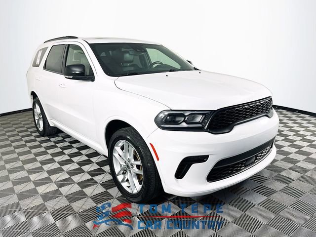 2023 Dodge Durango GT Plus 8-Speed Automatic 3.6L V6 24V VVT White Knuckle Clearcoat Durango GT Plus, 3.6L V6 24V VVT, 8-Speed Automatic, AWD, White Knuckle Clearcoat, Black Leather, 10.1 Touchscreen Display, 180 Amp Alternator, 4-Wheel Disc Brakes, 6 Speakers, 7 & 4 Pin Wiring Harness, ABS brakes, Adaptive Cruise Control w/Stop, Apple CarPlay/Android Auto, Auto-Dimming Exterior Driver Mirror, Auto-dimming Rear-View mirror, Automatic temperature control, Black Roof Rails, Brake assist, Class IV Receiver Hitch, Delay-off headlights, Dual front impact airbags, Dual front side impact airbags, Electronic Stability Control, Exterior Mirrors w/Memory, Exterior Mirrors w/Supplemental Signals, Full Speed Forward Collision Warning Plus, Fully automatic headlights, Garage door transmitter, Heated door mirrors, Heated front seats, Heated Second Row Seats, Heated steering wheel, Heavy-Duty Engine Cooling, Integrated Roof Rail Crossbars, Integrated Voice Command w/Bluetooth, Knee airbag, Leather steering wheel, Leather Trimmed Bucket Seats, Leather Wrapped Door Panels, Low tire pressure warning, Occupant sensing airbag, Outside temperature display, Overhead airbag, Panic alarm, ParkView Rear Back-Up Camera, Power 8-Way Driver Memory 8-Way Passenger Seats, Power driver seat, Power Driver/Passenger 4-Way Lumbar Adjust, Power Liftgate, Power steering, Power Sunroof, Power windows, Premium LED Fog Lamps, Radio: Uconnect 5 Nav w/10.1 Display, Radio/Driver Seat/Mirrors Memory, Rear air conditioning, Rear seat center armrest, Red Accent Stitching, Remote keyless entry, Speed-Sensitive Wipers, Steering wheel mounted audio controls, Tachometer, Telescoping steering wheel, Tilt steering wheel, Trailer Brake Control, USB Host Flip, Variably intermittent wipers, Ventilated Front Seats, Wheels: 20 x 8.0 Fine Silver.