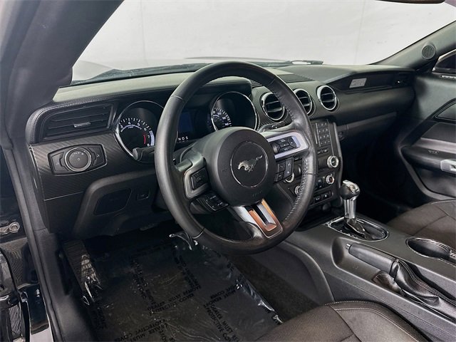 Shadow Black paint, 17 Sparkle Silver painted aluminum wheels, and high-intensity discharge headlights give this coupe a bold, modern look that still respects Mustang heritage. This is the kind of car that looks great pulling up to the office, the ballfield, or a night out in downtown Cincinnati.