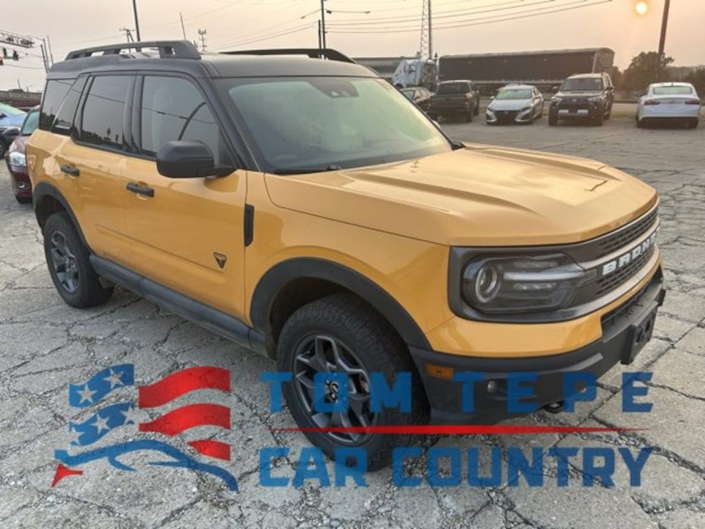 2021 Ford Bronco Sport Badlands 8-Speed Automatic EcoBoost 2.0L I4 GTDi DOHC Turbocharged VCT Cyber Orange Metallic Tricoat Bronco Sport Badlands, EcoBoost 2.0L I4 GTDi DOHC Turbocharged VCT, 8-Speed Automatic, 4WD, Cyber Orange Metallic Tricoat, Ebony/Active Orange w/Unique Cloth Heated Sport Contour Bucket Seats, 3.80 Axle Ratio, 4-Wheel Disc Brakes, 6 Speakers, ABS brakes, Automatic temperature control, Brake assist, Cargo Management System, Class II Trailer Tow Package w/Trailer Sway Control, Dual front impact airbags, Dual front side impact airbags, Electronic Stability Control, Emergency communication system: SYNC 3 911 Assist, Exterior Parking Camera Rear, Four wheel independent suspension, Front Bucket Seats, Front Center Armrest, Front fog lights, Fully automatic headlights, Heated door mirrors, Heated front seats, Knee airbag, Low tire pressure warning, Occupant sensing airbag, Outside temperature display, Overhead airbag, Overhead console, Power door mirrors, Power driver seat, Power steering, Power windows, Rear window wiper, Remote keyless entry, Security system, Speed control, Speed-sensing steering, Speed-Sensitive Wipers, Steering wheel mounted audio controls, SYNC 3 Communications & Entertainment System, Tachometer, Telescoping steering wheel, Tilt steering wheel, Traction control, Trip computer, Unique Cloth Heated Sport Contour Bucket Seats, Variably intermittent wipers, Wheels: 17 Carbonized Gray-Painted Aluminum.