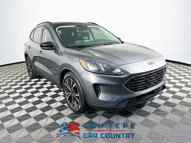 2021 Ford Escape SE 8-Speed Automatic 1.5L EcoBoost Carbonized Gray Metallic Carfax One-Owner, Escape SE, 1.5L EcoBoost, 8-Speed Automatic, FWD, Carbonized Gray Metallic, Dark Earth Gray w/Cloth Front Bucket Seats, 4-Wheel Disc Brakes, 6 Speakers, ABS brakes, Air Conditioning, Auto High-beam Headlights, Black Front & Rear Bumpers, Black Roof-Rack Side Rails, Black Upper Window Molding w/Black Beltline Molding, Brake assist, Dual front impact airbags, Dual front side impact airbags, Electronic Stability Control, Emergency communication system: SYNC 3 911 Assist, Exterior Parking Camera Rear, Four wheel independent suspension, Front Center Armrest, Fully automatic headlights, Gloss Black 5-Bar Upper Grille w/Chrome Surround, High Gloss Black Mirror Skull Caps, Knee airbag, Low tire pressure warning, Occupant sensing airbag, Outside temperature display, Overhead airbag, Overhead console, Panoramic Vista Roof, Power door mirrors, Power steering, Power windows, Rear window wiper, Remote keyless entry, SE Sport Appearance Package, Speed control, Speed-sensing steering, Speed-Sensitive Wipers, Steering wheel mounted audio controls, SYNC 3 Communications & Entertainment System, Tachometer, Telescoping steering wheel, Tilt steering wheel, Traction control, Trip computer, Unique Cloth Front Bucket Seats, Variably intermittent wipers, Wheels: 19 Machined-Face Ebony-Painted Aluminum.