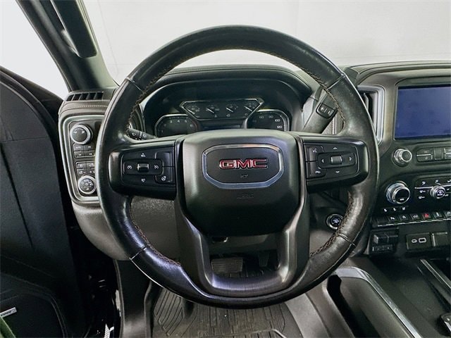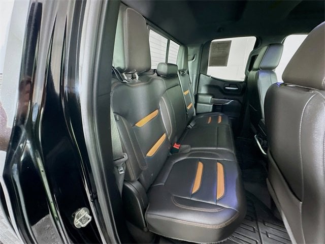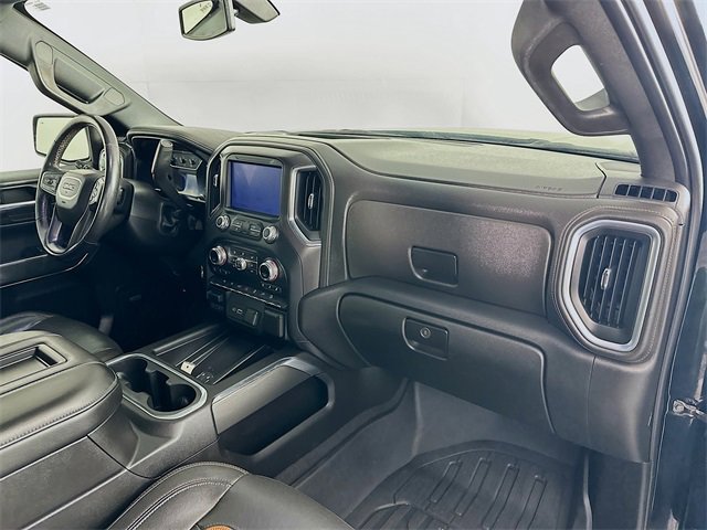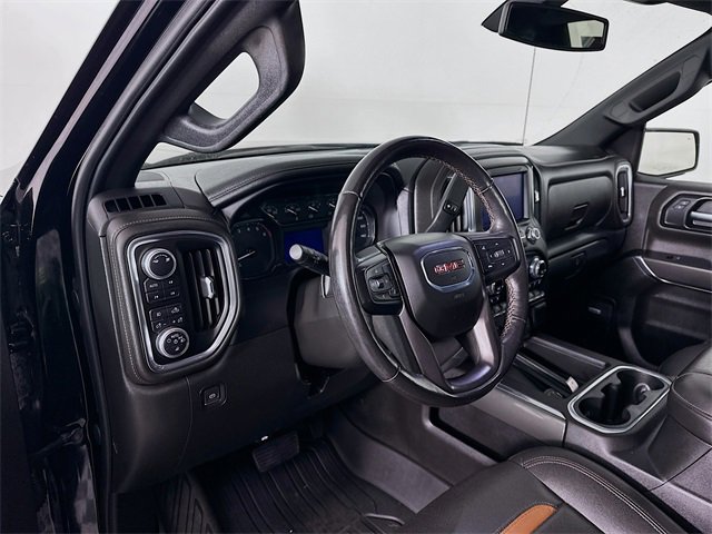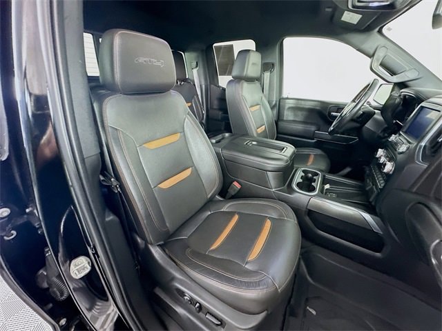 2019 GMC Sierra 1500 AT4 8-Speed Automatic EcoTec3 5.3L V8 Onyx Black Odometer is 21488 miles below market average! 8-Speed Automatic, 4WD, Jet Black With Kalahari Accents Leather, 10-Way Power Driver Seat Adjuster w/Lumbar, 12-Volt Rear Auxiliary Power Outlet, 120-Volt Bed Mounted Power Outlet, 120-Volt Instrument Panel Power Outlet, 170 Amp Alternator, 18 x 8.5 Machined Aluminum Wheels, 2 USB Ports, 2 USB Ports (1st Row), 3.23 Rear Axle Ratio, 4-Wheel Disc Brakes, 4.2 Diagonal Color Display Driver Info Center, 6 Rectangular Black Tubular Assist Steps (LPO), ABS brakes, Apple CarPlay/Android Auto, AT4 Preferred Package, AT4 Premium Package, Auto-dimming door mirrors, Auto-dimming Rear-View mirror, Auxiliary External Transmission Oil Cooler, Body-Color Surround Grille, Brake assist, Deep-Tinted Glass, Driver Alert Package I, Dual front impact airbags, Dual front side impact airbags, Electric Rear-Window Defogger, Electrical Lock Control Steering Column, Electronic Stability Control, Floor Mounted Console, Front Bucket Seats, Front wheel independent suspension, Fully automatic headlights, GMC 4G LTE, GMC Connected Access, HD Radio, HD Rear Vision Camera, Heated door mirrors, Heated front seats, Heated rear seats, Heated steering wheel, Heavy-Duty Rear Locking Differential, High-Capacity Air Filter, Hill Descent Control, Hitch Guidance, Hitch Guidance w/Hitch View, In-Vehicle Trailering App, Integrated Trailer Brake Controller, Keyless Open & Start, Lane Change Alert w/Side Blind Zone Alert, LED Cargo Area Lighting, Low tire pressure warning, Occupant sensing airbag, Off-Road Suspension, OnStar & GMC Connected Services Capable, Overhead airbag, Perforated Leather-Appointed Seat Trim, Perimeter Lighting, Power Door Locks, Power door mirrors, Power driver seat, Power passenger seat, Power Sliding Rear Window w/Rear Defogger, Power steering, Power windows, Preferred Equipment Group 4SB, Premium Bose 7-Speaker Sound System, Radio: Premium GMC Infotainment Sys w/Navigation, Rear Cross Traffic Alert, Rear Dual USB Charging-Only Ports, Rear step bumper, Rear Wheelhouse Liners, Red Recovery Hooks, Remote keyless entry, Remote Vehicle Starter System, SiriusXM Radio, Speed control, Speed-sensing steering, Spray-On Pickup Bed Liner w/AT4 Logo, Steering Wheel Audio Controls, Steering wheel mounted audio controls, Theft Deterrent System (Unauthorized Entry), Traction control, Trailer Tire Pressure Monitor System, Trailering Package, Ultrasonic Front & Rear Park Assist, Universal Home Remote, Variably intermittent wipers, Ventilated Driver & Front Passenger Seats, Wireless Charging.