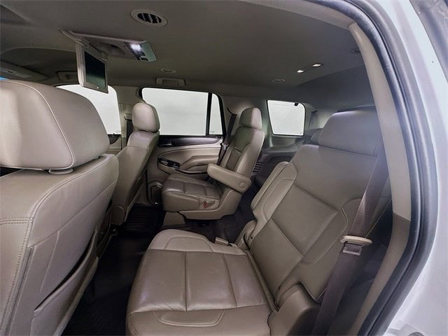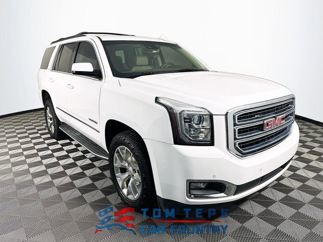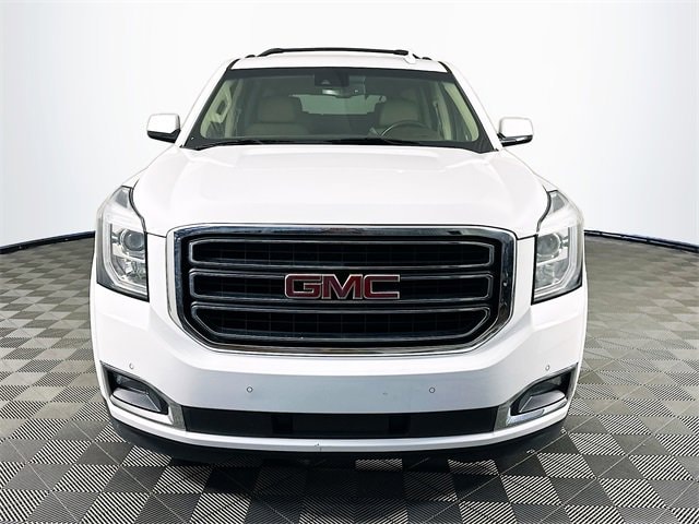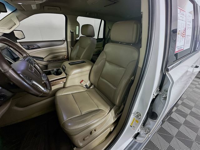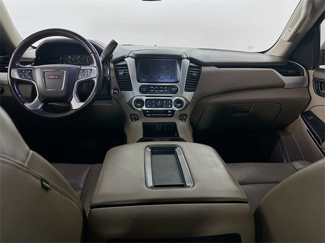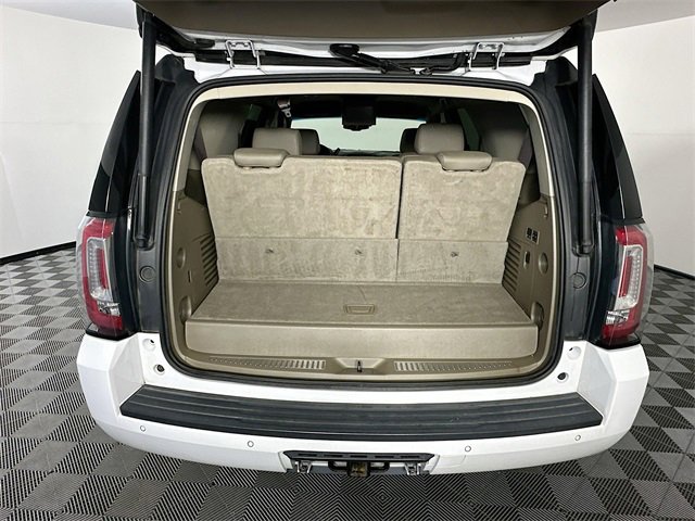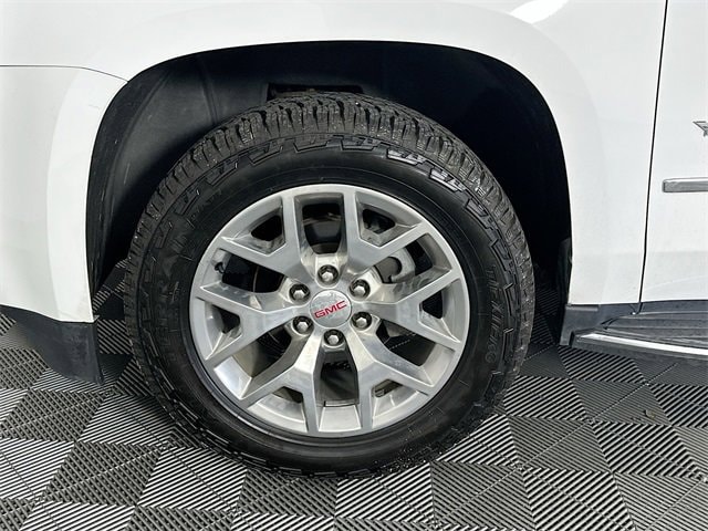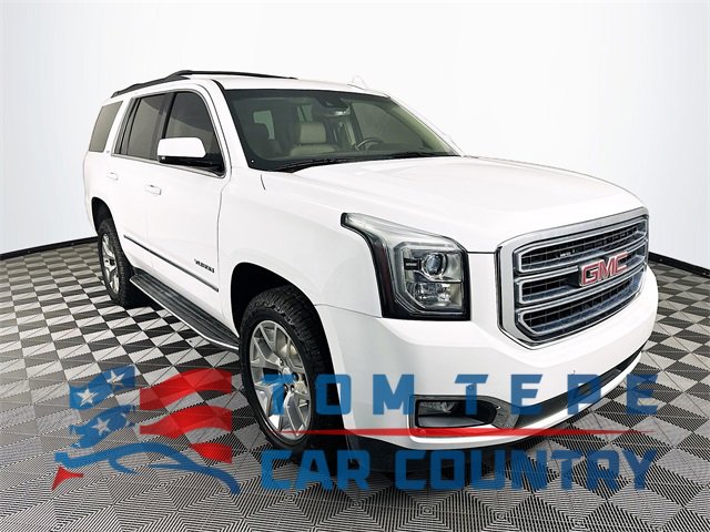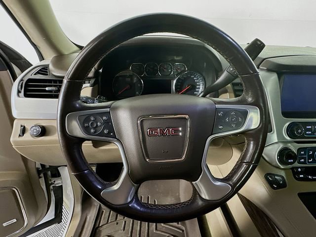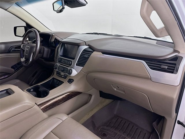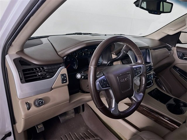 2019 GMC Yukon SLT 6-Speed Automatic Electronic with Overdrive EcoTec3 5.3L V8 Summit White Apple CarPlay, Android Auto, Yukon SLT, EcoTec3 5.3L V8, 6-Speed Automatic Electronic with Overdrive, Summit White, Cocoa/Dune w/Perforated Leather-Appointed Seat Trim, 20 x 9 Polished Aluminum Wheels, 3rd row seats: split-bench, 4-Wheel Antilock Disc Brakes, 5 Auxiliary 12-volt Power Outlets, ABS brakes, Adjustable pedals, Apple CarPlay/Android Auto, Auto High-beam Headlights, Auto-dimming door mirrors, Auto-dimming Rear-View mirror, Automatic temperature control, Black Assist Steps w/Chrome Strip, Bose Premium 9-Speaker System, Brake assist, Dual front impact airbags, Dual front side impact airbags, Electronic Stability Control, Emergency communication system: OnStar and GMC connected services capable, Enhanced Driver Alert Package, Exterior Parking Camera Rear, Forward Collision Alert, Front fog lights, Front wheel independent suspension, Full-Feature Reclining Bucket Seats, Fully automatic headlights, Garage door transmitter, Hands Free Power Programmable Rear Liftgate, Heated & Ventilated Driver & Front Passenger Seats, Heated door mirrors, Heated Leather-Wrapped Steering Wheel, Heated rear seats, Inside Rear-View Auto-Dimming Mirror, IntelliBeam Automatic High Beam On/Off, Lane Change Alert w/Side Blind Zone Alert, Lane Keep Assist w/Lane Departure Warning, Low Speed Forward Automatic Braking, Low tire pressure warning, Memory Package, Memory seat, Occupant sensing airbag, Outside temperature display, Overhead airbag, Overhead console, Pedal memory, Power door mirrors, Power driver seat, Power Liftgate, Power Release 2nd Row Bucket Seats, Power steering, Power Tilt & Telescopic Steering Column, Power windows, Power-Adjustable Pedals For Accelerator & Brake, Premium audio system: IntelliLink, Premium Smooth Ride Suspension Package, Push Button Keyless Start, Rain sensing wipers, Rear air conditioning, Rear Cross Traffic Alert, Rear Seat Blu-Ray/DVD Entertainment System, Rear Seat DVD Entertainment System, Rear window wiper, Remote Keyless Entry, Security system, Speed control, Speed-sensing steering, Steering wheel memory, Steering wheel mounted audio controls, Telescoping steering wheel, Tilt steering wheel, Traction control, Trip computer, Turn signal indicator mirrors, Universal Home Remote, Variably intermittent wipers.