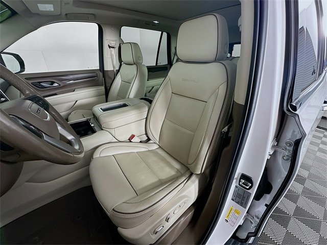 2022 GMC Yukon Denali 10-Speed Automatic with Overdrive EcoTec3 6.2L V8 White Frost Tricoat 4WD, 15 Diagonal Multi-Color Head-Up Display, 2 Presets For Outside Rearview Mirrors, 3 Years of GMC Connected Services, 3rd Row 60/40 Power-Folding Split-Bench Seat, 4-Wheel Disc Brakes, ABS brakes, Adaptive suspension, Apple CarPlay/Android Auto, Auto High-beam Headlights, Auto-dimming Rear-View mirror, Auto-leveling suspension, Automatic Emergency Braking, Automatic Stop/Start, Automatic temperature control, Bose 14-Speaker Surround w/CenterPoint, Brake assist, Bright Front & Rear Door Sill Plates, Chrome Door Handles w/Body-Color Strip, Dual Exhaust System, Dual front impact airbags, Dual front side impact airbags, Dual-Pane Panoramic Power Sunroof, Electronic Stability Control, Emergency communication system: OnStar and GMC Connected Services capable, Floor Console, Forward Collision Alert, Four wheel independent suspension, Front & Rear Park Assist, Front fog lights, Fully automatic headlights, Galvano Bodyside Moldings, Garage door transmitter, Hands-Free Power Programmable Rear Liftgate, HD Surround Vision, Heated & Ventilated Driver & Front Passenger Seats, Heated 2nd Row Outboard Position Seats, Heated Driver & Front Passenger Seats, Heated front seats, Heated rear seats, Heated Steering Wheel, Hill Descent Control, Inside Rear-View Auto-Dimming Mirror, Lane Change Alert w/Side Blind Zone Alert, Lane Keep Assist w/Lane Departure Warning, Low tire pressure warning, Magnetic Ride Control Suspension, Occupant sensing airbag, Outside Heated Power-Adjustable Mirrors, Outside temperature display, Overhead airbag, Overhead console, Perforated Leather Seating Surfaces, Power Liftgate, Power Release 2nd Row Bucket Seats, Power Tilt & Telescopic Steering Column, Power-Retractable Assist Steps, Preferred Equipment Group 5SA, Rain sensing wipers, Rear air conditioning, Rear Pedestrian Alert, Rear window wiper, Safety Alert Seat, Security system, Speed control, Speed-sensing steering, Start/Stop System Disable Button, Telescoping steering wheel, Tilt steering wheel, Traction control, Universal Home Remote, Variably intermittent wipers, Wheels: 22 Bright Chrome (LPO), Wheels: 22 x 9 Steel Interim (LPO), Wireless Charging.