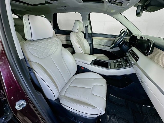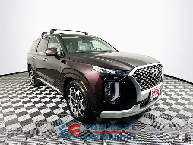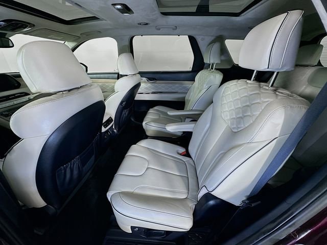 2022 Hyundai Palisade Calligraphy 8-Speed Automatic with SHIFTRONIC V6 Sierra Burgundy Carfax One-Owner, Palisade Calligraphy, V6, 8-Speed Automatic with SHIFTRONIC, AWD, Sierra Burgundy, Navy/Beige w/Premium Nappa Leather Seat Trim, 12 Speakers, 3rd row seats: split-bench, 4-Wheel Disc Brakes, ABS brakes, Apple CarPlay & Android Auto, Auto-dimming Rear-View mirror, Auto-leveling suspension, Automatic temperature control, Brake assist, Cargo Block, Cargo Net, Cargo Package, Cargo Tray, Dual front impact airbags, Dual front side impact airbags, Electronic Stability Control, Emergency communication system: Blue Link Connected Car Service (3-year complimentary subscription), Four wheel independent suspension, Front Bucket Seats, Front Center Armrest, Fully automatic headlights, Garage door transmitter: HomeLink, harman/kardon® Speakers, Heads-Up Display, Heated door mirrors, Heated front seats, Heated rear seats, Heated steering wheel, Knee airbag, Low tire pressure warning, Memory seat, Navigation System, Occupant sensing airbag, Outside temperature display, Overhead airbag, Overhead console, Power door mirrors, Power driver seat, Power Liftgate, Power moonroof, Power steering, Power windows, Premium Nappa Leather Seat Trim, Radio: AM/FM/MP3 Premium Audio System, Rain sensing wipers, Rear air conditioning, Rear window wiper, Remote keyless entry, Security system, Speed control, Speed-sensing steering, Steering wheel mounted audio controls, Tachometer, Telescoping steering wheel, Tilt steering wheel, Traction control, Turn signal indicator mirrors, Variably intermittent wipers, Ventilated front seats, Ventilated rear seats, Wheels: 20 x 7.5J Calligraphy Exclusive Alloy.