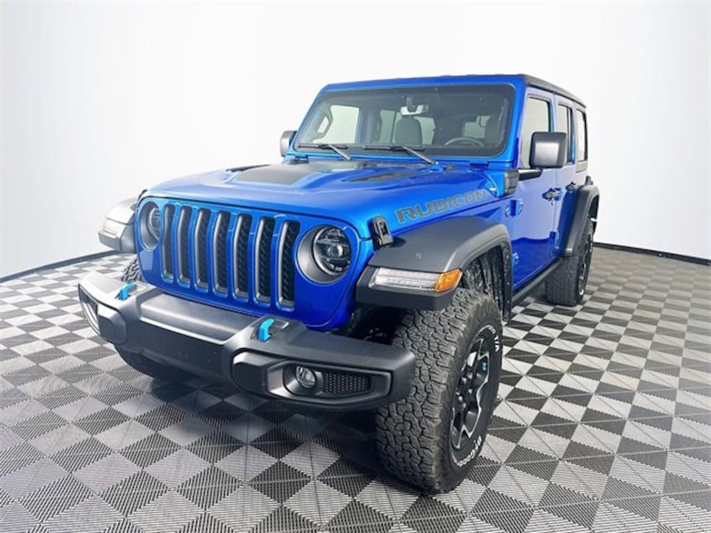 2022 Jeep Wrangler Unlimited Rubicon 4xe 8-Speed Automatic 2.0L I4 DOHC Hydro Blue Pearl Coat Odometer is 16704 miles below market average! Carfax One-Owner, Wrangler Unlimited Rubicon 4xe, 2.0L I4 DOHC, 8-Speed Automatic, 4WD, Hydro Blue Pearl Coat, Black w/Cloth Low-Back Bucket Seats, 4-Wheel Disc Brakes, 7 & 4 Pin Wiring Harness, 700 Amp Maintenance Free Battery, 9 Speakers, ABS brakes, Apple CarPlay/Android Auto, Auto-dimming Rear-View mirror, Automatic temperature control, Auxiliary Switches, Black 3-Piece Hard Top, Brake assist, Class II Receiver Hitch, Cold Weather Group, Dual front impact airbags, Dual front side impact airbags, Electronic Stability Control, Emergency communication system: SiriusXM Guardian, Freedom Panel Storage Bag, Front Bucket Seats, Front Center Armrest w/Storage, Front fog lights, Fully automatic headlights, Garage door transmitter, Heated door mirrors, Heated Front Seats, Heated Steering Wheel, Integrated roll-over protection, Leather steering wheel, Low tire pressure warning, Navigation System, Occupant sensing airbag, Outside temperature display, ParkView Rear Back-Up Camera, Performance Suspension, Power door mirrors, Power steering, Power windows, Radio: Uconnect 4C Nav w/8.4 Display, Rear Window Defroster, Rear Window Wiper/Washer, Remote keyless entry, Remote Start System, Security system, Speed control, Steering wheel mounted audio controls, Tachometer, Telescoping steering wheel, Tilt steering wheel, Traction control, Trailer Tow & HD Electrical Group, Trip computer, Variably intermittent wipers, Wheels: 17 x 7.5 Machined/Painted Black.