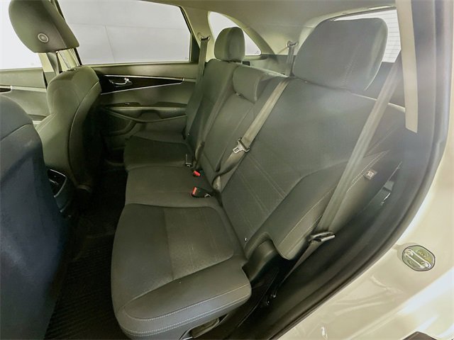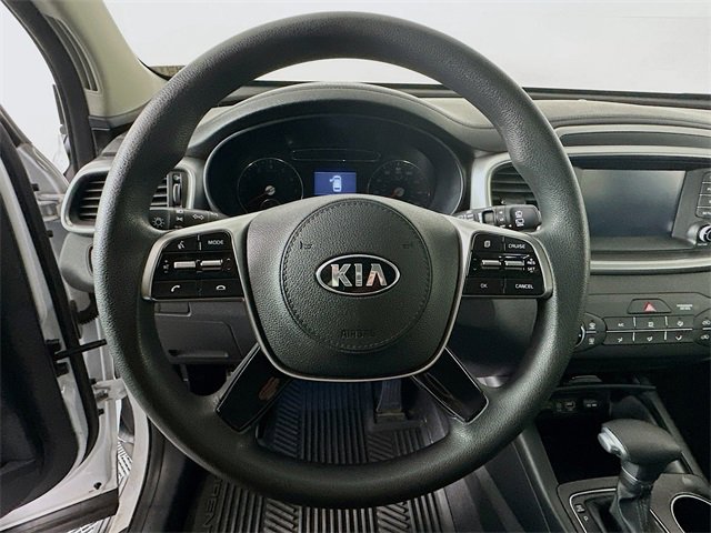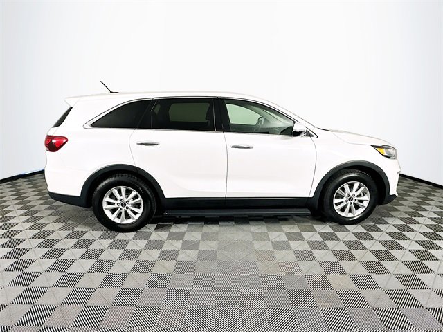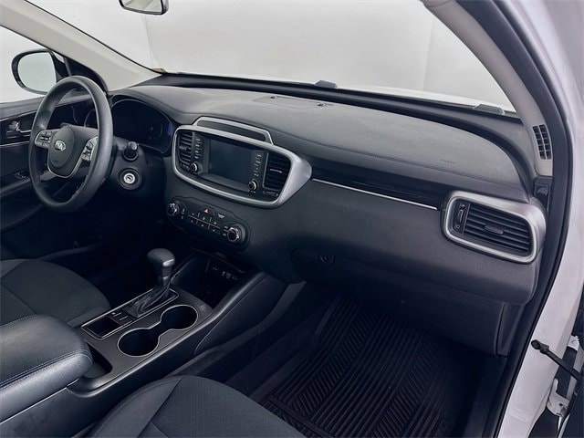2019 Kia Sorento L 6-Speed Automatic with Sportmatic I4 Snow White Pearl Odometer is 52723 miles below market average! Carfax One-Owner, Sorento L, Snow White Pearl, Satin Black w/YES Essentials Cloth Seat Trim, 17 x 7.0 Alloy Wheels, 3rd row seats: split-bench, 4-Wheel Disc Brakes, 6 Speakers, ABS brakes, Air Conditioning, Apple CarPlay & Android Auto, Brake assist, Dual front impact airbags, Dual front side impact airbags, Electronic Stability Control, Exterior Parking Camera Rear, Four wheel independent suspension, Front Bucket Seats, Front Center Armrest, Fully automatic headlights, Heated door mirrors, Low tire pressure warning, Occupant sensing airbag, Outside temperature display, Overhead airbag, Overhead console, Power door mirrors, Power steering, Power windows, Radio: UVO Play w/AM/FM/MP3, Remote keyless entry, Security system, Speed control, Speed-sensing steering, Steering wheel mounted audio controls, Tachometer, Telescoping steering wheel, Tilt steering wheel, Traction control, Turn signal indicator mirrors, Variably intermittent wipers, YES Essentials Cloth Seat Trim.