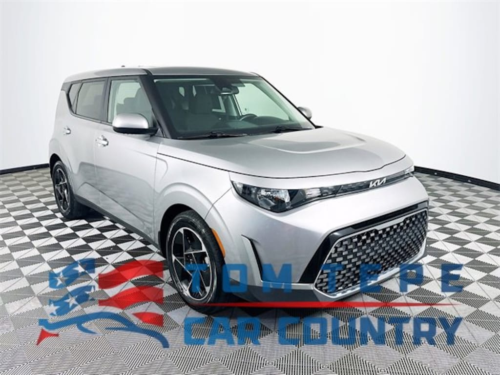2023 Kia Soul EX CVT 2.0L I4 DOHC Steel Gray Carfax One-Owner, Soul EX, 2.0L I4 DOHC, Steel Gray, Black/Gray w/Woven & Tricot Cloth Seat Trim, 17 Alloy Wheels, 4-Wheel Disc Brakes, 6 Speakers, ABS brakes, Apple CarPlay & Android Auto, Auto High-beam Headlights, Automatic temperature control, Brake assist, Dual front impact airbags, Dual front side impact airbags, Electronic Stability Control, Emergency communication system, Exterior Parking Camera Rear, Front Center Armrest, Front wheel independent suspension, Fully automatic headlights, Heated door mirrors, Heated Front Bucket Seats, Leather Shift Knob, Leather steering wheel, Low tire pressure warning, Navigation System, Occupant sensing airbag, Outside temperature display, Overhead airbag, Overhead console, Panic alarm, Power door mirrors, Power driver seat, Power moonroof, Power steering, Power windows, Radio: AM/FM/MP3/HD Audio System, Rear window wiper, Remote keyless entry, Speed control, Speed-sensing steering, Steering wheel mounted audio controls, Tachometer, Telescoping steering wheel, Tilt steering wheel, Traction control, Variably intermittent wipers.