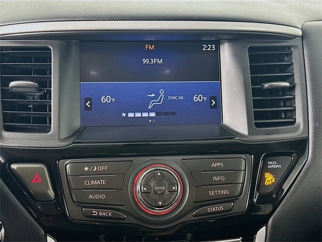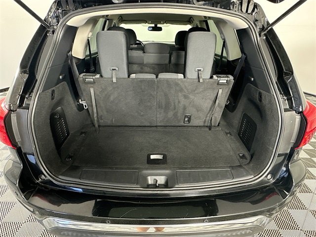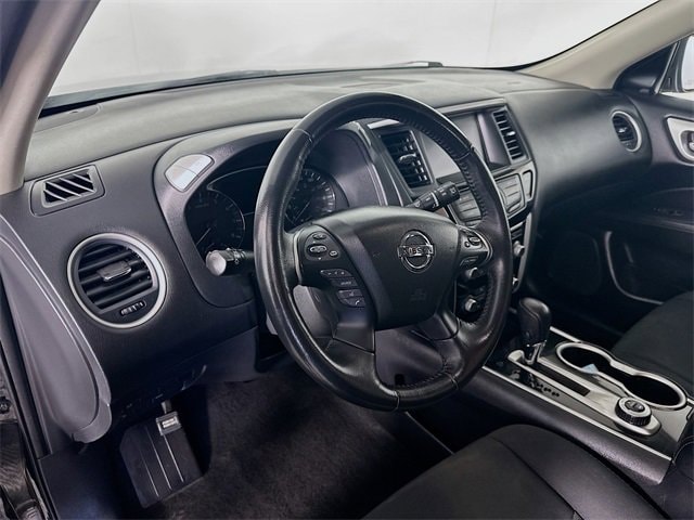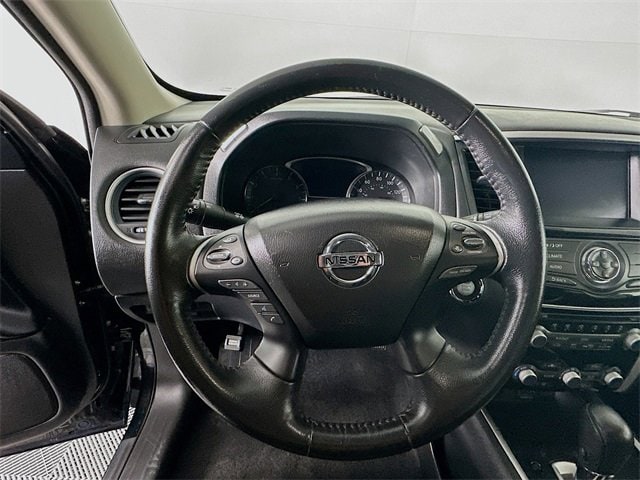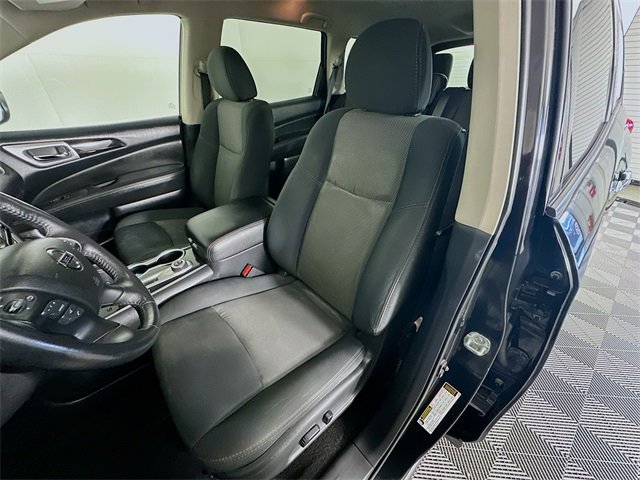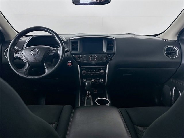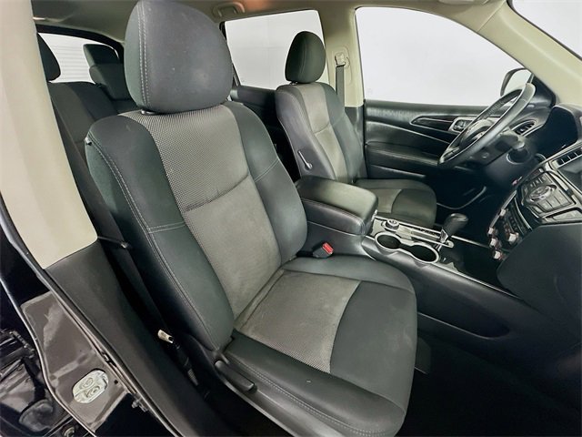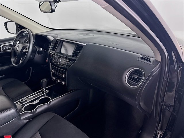 2019 Nissan Pathfinder SV CVT with Xtronic V6 Magnetic Black Pearl Odometer is 35437 miles below market average! Pathfinder SV, V6, 4WD, Magnetic Black Pearl, Charcoal w/Cloth Seating Surfaces, 3rd row seats: bench, 4-Wheel Disc Brakes, 6-Speaker Audio System, ABS brakes, Auto-dimming Rear-View mirror, Automatic temperature control, Blind Spot Warning, Brake assist, Dual front impact airbags, Dual front side impact airbags, Electronic Stability Control, Four wheel independent suspension, Front Bucket Seats, Front fog lights, Fully automatic headlights, Garage door transmitter: HomeLink, Leather Shift Knob, Leather steering wheel, Low tire pressure warning, NissanConnect w/Navigation & Services, Occupant sensing airbag, Outside temperature display, Overhead airbag, Overhead console, Power door mirrors, Power driver seat, Power steering, Power windows, Radio: AM/FM/CD Audio System w/NissanConnect, Rear air conditioning, Rear Parking Sensors, Reclining 3rd row seat, Remote keyless entry, Security system, SiriusXM Traffic, Speed control, Speed-sensing steering, Speed-Sensitive Wipers, Steering wheel mounted audio controls, Tachometer, Telescoping steering wheel, Tilt steering wheel, Traction control, Turn signal indicator mirrors, Variably intermittent wipers, Wheels: 18 x 7.5 J Machined Aluminum-Alloy.