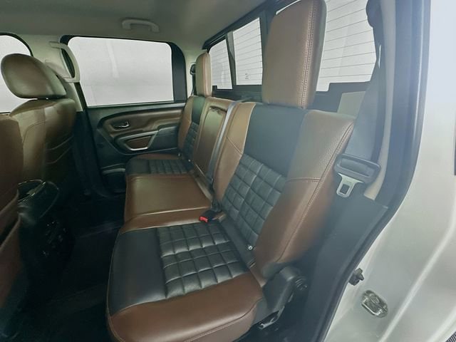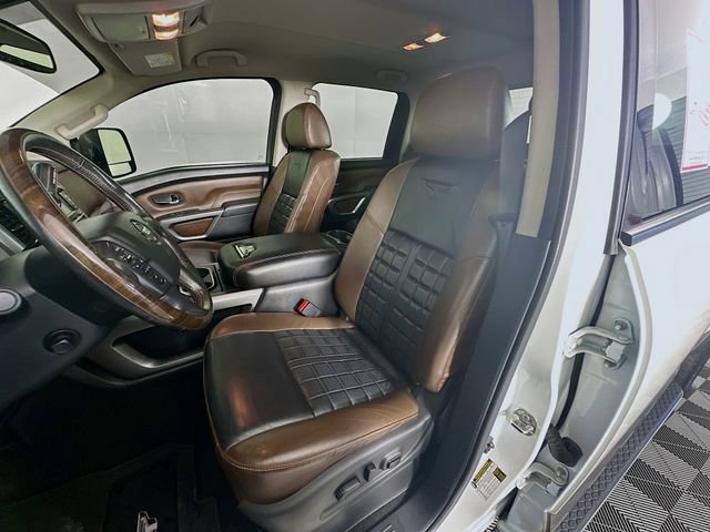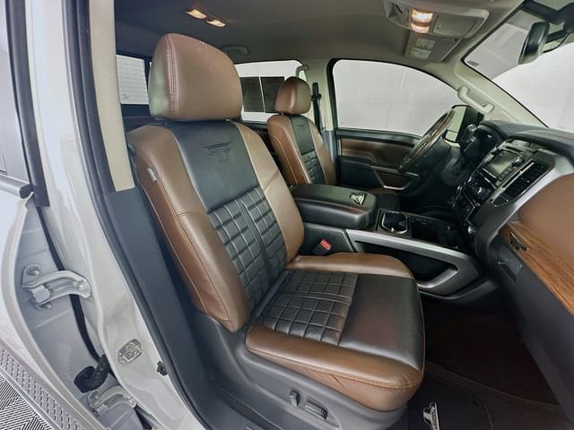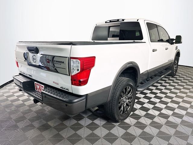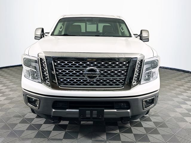 2019 Nissan Titan XD Platinum Reserve 6-Speed Automatic 5.0L V8 Pearl White Odometer is 43191 miles below market average! **RECENT ARRIVAL**, Titan XD Platinum Reserve, 4D Crew Cab, 5.0L V8, 6-Speed Automatic, 4WD, Pearl White, Black/Brown w/Premium Leather Seat Trim, 12 Speakers, 3.916 Axle Ratio, 4-Wheel Disc Brakes, ABS brakes, Auto tilt-away steering wheel, Auto-dimming door mirrors, Auto-dimming Rear-View mirror, Automatic temperature control, Block heater, Brake assist, Dual front impact airbags, Dual front side impact airbags, Electronic Locking Tailgate, Electronic Stability Control, Emergency communication system: NissanConnect Services, Fender Premium Audio w/12 Speakers, Front fog lights, Front wheel independent suspension, Garage door transmitter: HomeLink, Gooseneck Ball & Anchor Kit (K12), Heated & Cooled Captain's Chairs, Heated door mirrors, Heated steering wheel, Leather Shift Knob, Leather steering wheel, Low tire pressure warning, Memory seat, Nissan Navigation System, NissanConnect featuring Apple CarPlay and Android Auto, NissanConnect Services Powered by SiriusXM, Outside temperature display, Overhead airbag, Overhead console, Platinum Reserve Utility Bed Package, Platinum Utility Package, Power door mirrors, Power driver seat, Power passenger seat, Power steering, Power windows, Premium Leather Seat Trim, Rain sensing wipers, Rear step bumper, Rear Utility Bed Step, Remote keyless entry, Running Boards w/Dark Chrome, Security system, Siri Eyes Free, Speed control, Speed-sensing steering, Speed-Sensitive Wipers, Steering wheel memory, Steering wheel mounted audio controls, Tachometer, Telescoping steering wheel, Tilt steering wheel, TITAN Box, Traction control, Turn signal indicator mirrors, Variably intermittent wipers, Ventilated front seats, Wheels: 20 x 7.5 Dark Chrome Clad.