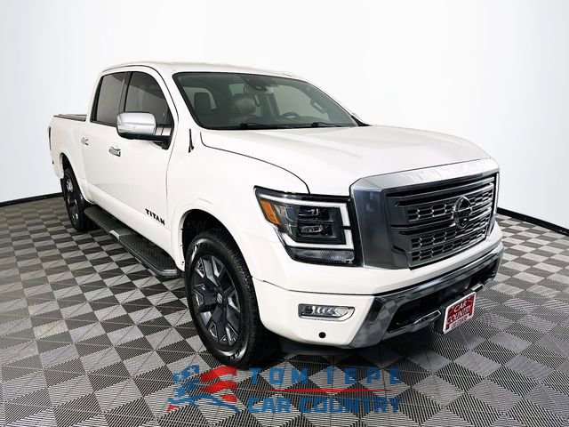 Tom Tepe Autocenter and Car Country know that drivers in Milan, Indiana; Aurora, Indiana; Harrison, Ohio; Greater Cincinnati; and Northern Kentucky want more than just a pickup; they want a truck that can tow, travel, and turn heads while doing it. That's exactly what this 2021 Nissan Titan Platinum Reserve delivers. Finished in stunning Pearl White Metallic, powered by a commanding 5.6L V8 (400 horsepower), and equipped with confident 4WD, this is truck capability wrapped in premium comfort.