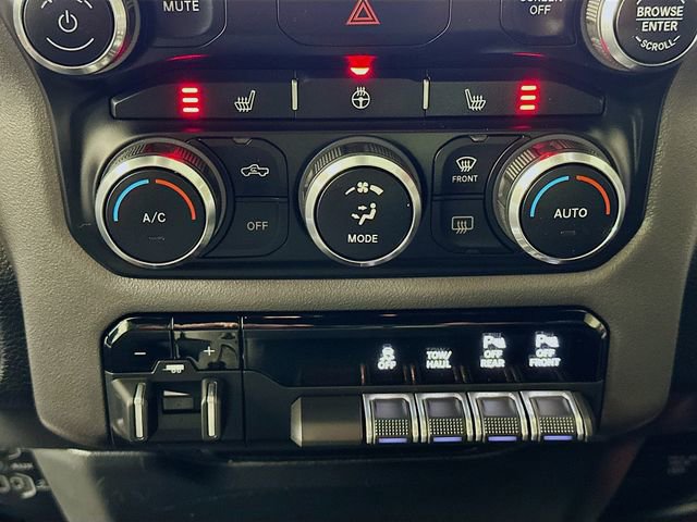 Inside, the Big Horn Level 2 Equipment Group turns this truck into your rolling command center. The 8.4 Uconnect 5 touchscreen with Apple CarPlay and Google Android Auto keeps your maps, music, and messages front-and-center, while Bluetooth handsfree phone and audio let you stay connected without taking your hands off the leather-wrapped steering wheel. Dual-zone automatic temperature control means you and your passenger can each dial in your perfect comfort level.