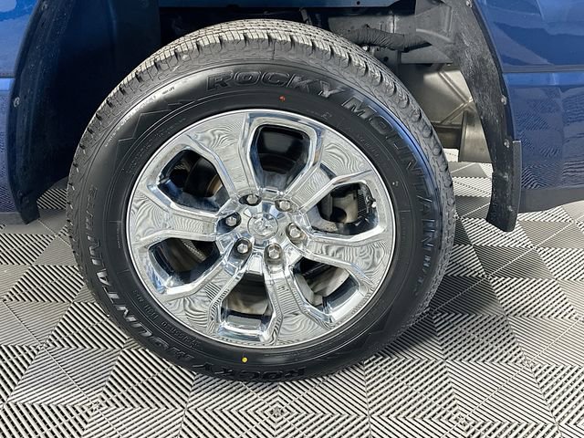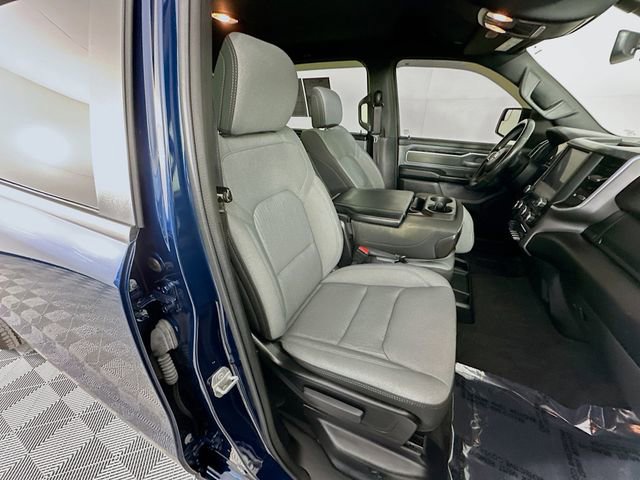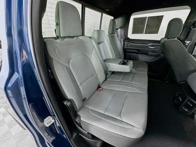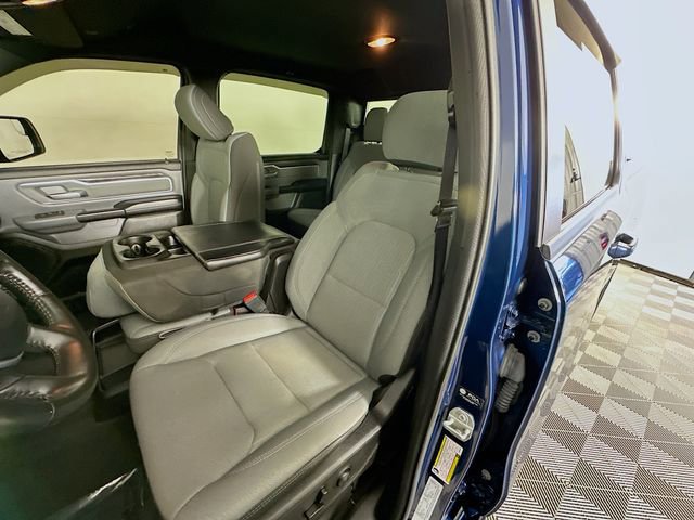 When it's time to work, this Ram is ready. A Class IV receiver hitch, trailer brake control, heavy-duty engine cooling, and 400W inverter make towing easier and more secure. 2nd-row in-floor storage bins and smart interior storage keep tools, tie-downs, and gear organized and out of sight, and the 20 chrome-clad wheels give this Patriot Blue Pearlcoat Big Horn serious driveway appeal.