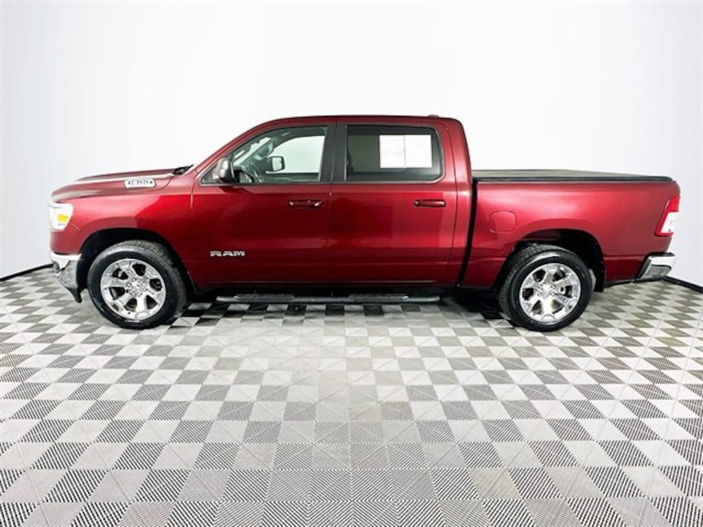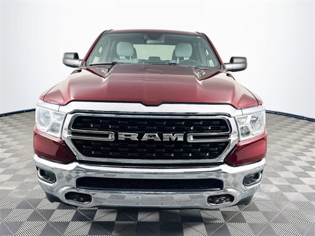 2022 Ram 1500 Big Horn/Lone Star 8-Speed Automatic 3.6L V6 24V VVT Delmonico Red Pearlcoat Odometer is 15041 miles below market average! Carfax One-Owner, 1500 Big Horn/Lone Star, 4D Crew Cab, 3.6L V6 24V VVT, 8-Speed Automatic, 4WD, Delmonico Red Pearlcoat, Black w/Cloth High-Back Bucket Seats, 3.55 Rear Axle Ratio, 4 Way Front Headrests, 4-Wheel Disc Brakes, 48V Belt Starter Generator, ABS brakes, Air Conditioning, Brake assist, Convex Wide-Angle Mirror Insert, Dual front impact airbags, Dual front side impact airbags, Electronic Stability Control, Emergency communication system: SiriusXM Guardian, Front fog lights, Front wheel independent suspension, Fully automatic headlights, GPS Antenna Input, Heated door mirrors, Heavy-Duty Engine Cooling, Integrated Voice Command w/Bluetooth, Leather steering wheel, Low tire pressure warning, Occupant sensing airbag, Overhead airbag, Panic alarm, ParkView Rear Back-Up Camera, Power door mirrors, Power steering, Power windows, Radio: Uconnect 3 w/5 Display, Rear step bumper, Remote keyless entry, Remote Start System, Speed control, Steering wheel mounted audio controls, Traction control, Wheels: 20 x 9 Aluminum Chrome Clad (WRK).