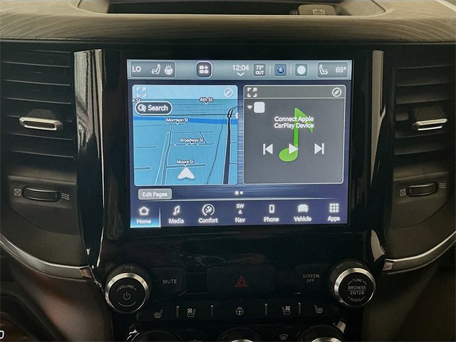 Tech-wise, the 2024 Ram 1500 Laramie keeps you connected and in command. Apple CarPlay and Android Auto let you seamlessly sync your favorite apps and music to the large infotainment display. Need directions or traffic updates? The Connected Travel & Traffic Services and Global Telematics Box Module have your back. And when backing into tight spots or hitching a trailer, the ParkView Rear Back-Up Camera offers crystal-clear guidance.