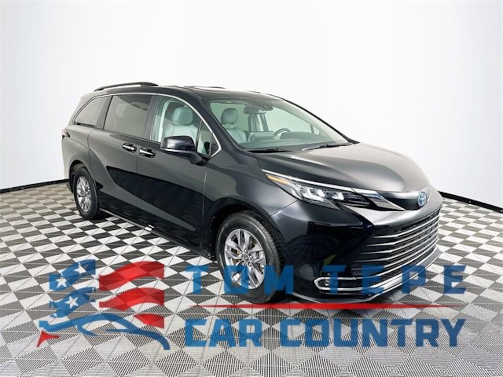 2024 Toyota Sienna XLE 8 Passenger Hybrid CVT 2.5L I4 Midnight Black Metallic Carfax One-Owner, Sienna XLE 8 Passenger Hybrid, 2.5L I4, Midnight Black Metallic, Graphite w/Leather Seat Material, 17 Alloy Wheels, 3rd row seats: split-bench, 4-Wheel Disc Brakes, 8 Speakers, ABS brakes, AM/FM radio: SiriusXM, Apple CarPlay/Android Auto, Auto High-beam Headlights, Auto-dimming door mirrors, Auto-dimming Rear-View mirror, Automatic temperature control, Brake assist, Door auto-latch, Dual front impact airbags, Dual front side impact airbags, Electronic Stability Control, Emergency communication system: Safety Connect (3-year trial), Exterior Parking Camera Rear, Four wheel independent suspension, Front fog lights, Front Heated Bucket Seats, Fully automatic headlights, Garage door transmitter: HomeLink, Heated door mirrors, Knee airbag, Lane Departure Warning System, Leather Shift Knob, Leather steering wheel, Low tire pressure warning, Occupant sensing airbag, Outside temperature display, Overhead airbag, Overhead console, Power door mirrors, Power driver seat, Power Liftgate, Power moonroof, Power passenger seat, Power steering, Power windows, Rear air conditioning, Rear side impact airbag, Rear window wiper, Reclining 3rd row seat, Remote keyless entry, SofTex Seat Trim, Speed-sensing steering, Steering wheel mounted audio controls, Tachometer, Telescoping steering wheel, Traction control, Trip computer, Turn signal indicator mirrors, Variably intermittent wipers.