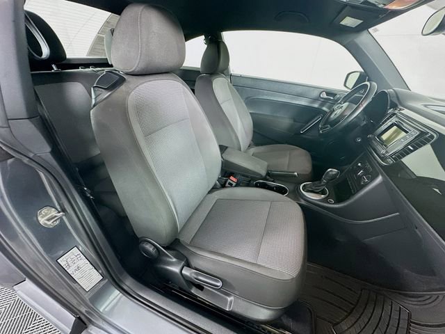 2018 Volkswagen Beetle 2.0T S 6-Speed Automatic with Tiptronic 2.0L TSI Platinum Gray Metallic Titan Black w/Tixo Cloth Seating Surfaces, 4-Wheel Disc Brakes, 8 Speakers, ABS brakes, Air Conditioning, Brake assist, Dual front impact airbags, Dual front side impact airbags, Electronic Stability Control, Exterior Parking Camera Rear, Four wheel independent suspension, Front Center Armrest w/Storage, Heated door mirrors, Heated Front Comfort Seats, Leather Shift Knob, Leather steering wheel, Low tire pressure warning, Occupant sensing airbag, Outside temperature display, Overhead airbag, Overhead console, Panic alarm, Power door mirrors, Power steering, Power windows, Radio: AM/FM/HD 6.3 Touchscreen w/CD Player, Remote keyless entry, Speed control, Speed-sensing steering, Steering wheel mounted audio controls, Tachometer, Telescoping steering wheel, Tilt steering wheel, Traction control, Variably intermittent wipers, Wheels: 16 Whirl Alloy.
