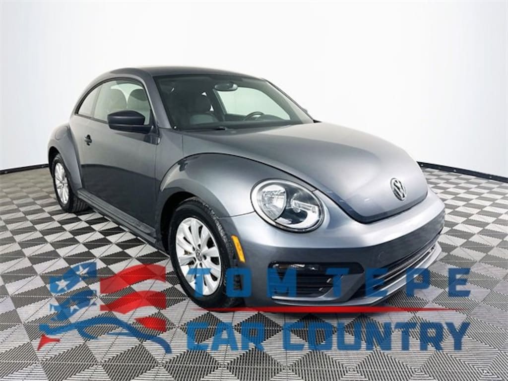 2018 Volkswagen Beetle 2.0T S 6-Speed Automatic with Tiptronic 2.0L TSI Platinum Gray Metallic Beetle 2.0T S, 2.0L TSI, 6-Speed Automatic with Tiptronic, FWD, Platinum Gray Metallic, Titan Black w/Tixo Cloth Seating Surfaces, 4-Wheel Disc Brakes, 8 Speakers, ABS brakes, Air Conditioning, Brake assist, Dual front impact airbags, Dual front side impact airbags, Electronic Stability Control, Exterior Parking Camera Rear, Four wheel independent suspension, Front Center Armrest w/Storage, Heated door mirrors, Heated Front Comfort Seats, Leather Shift Knob, Leather steering wheel, Low tire pressure warning, Occupant sensing airbag, Outside temperature display, Overhead airbag, Overhead console, Panic alarm, Power door mirrors, Power steering, Power windows, Radio: AM/FM/HD 6.3 Touchscreen w/CD Player, Remote keyless entry, Speed control, Speed-sensing steering, Steering wheel mounted audio controls, Tachometer, Telescoping steering wheel, Tilt steering wheel, Traction control, Variably intermittent wipers, Wheels: 16 Whirl Alloy.