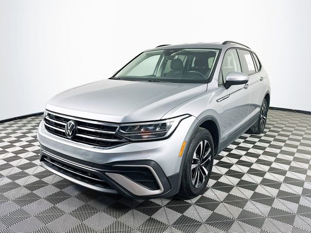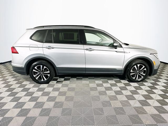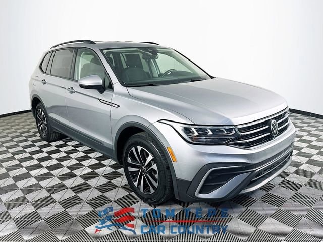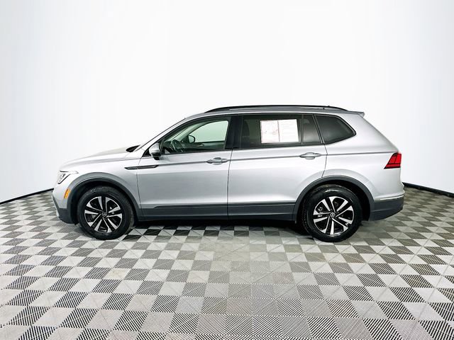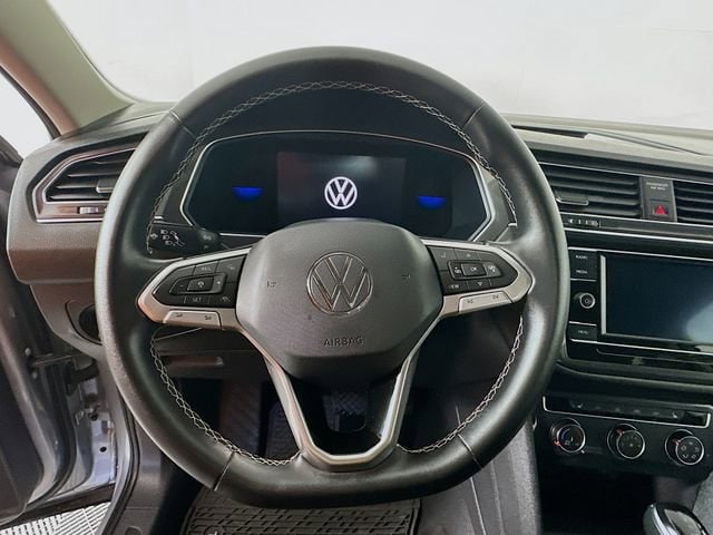 2023 Volkswagen Tiguan 2.0T S 8-Speed Automatic with Tiptronic 2.0L TSI DOHC Platinum Gray Metallic Odometer is 10596 miles below market average! Carfax One-Owner, 3rd row seats: bench, 4-Wheel Disc Brakes, 4-Wheel Independent Suspension, 6 Speakers, ABS brakes, Air Conditioning, Brake assist, Delay-off headlights, Dual front impact airbags, Dual front side impact airbags, Electronic Stability Control, Emergency communication system: VW Car-Net Safe & Secure 5-year, Exterior Parking Camera Rear, Forward collision: FCW w/Autonomous Emergency Braking mitigation, Four wheel independent suspension, Fully automatic headlights, Heated door mirrors, Heated Front Bucket Seats, Leather Shift Knob, Low tire pressure warning, Occupant sensing airbag, Outside temperature display, Overhead airbag, Overhead console, Panic alarm, Power door mirrors, Power windows, Radio: Composition Color AM/FM, Rear seat center armrest, Rear window wiper, Remote keyless entry, Speed control, Speed-sensing steering, Steering wheel mounted audio controls, Telescoping steering wheel, Tilt steering wheel, Traction control, Turn signal indicator mirrors, Variably intermittent wipers, Wheels: 17 2-Tone Machined Twin 5-Spoke Alloy.